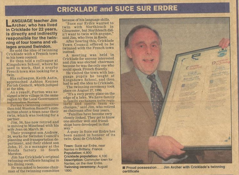 Cricklade twin town of Sucé-sur-Erdre in France